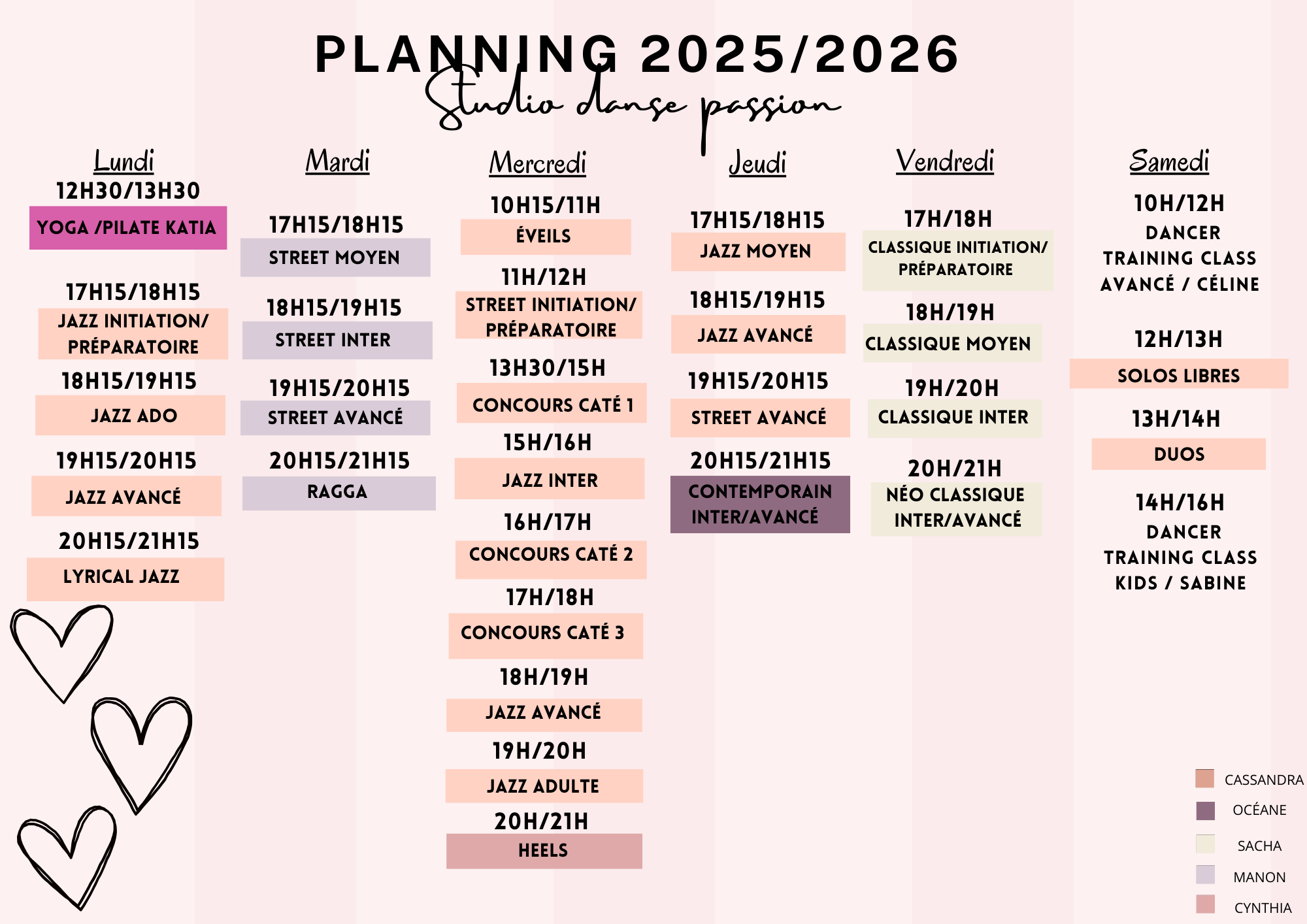 Retrouvez le planning mis à jour et les tarifs des différents cours.