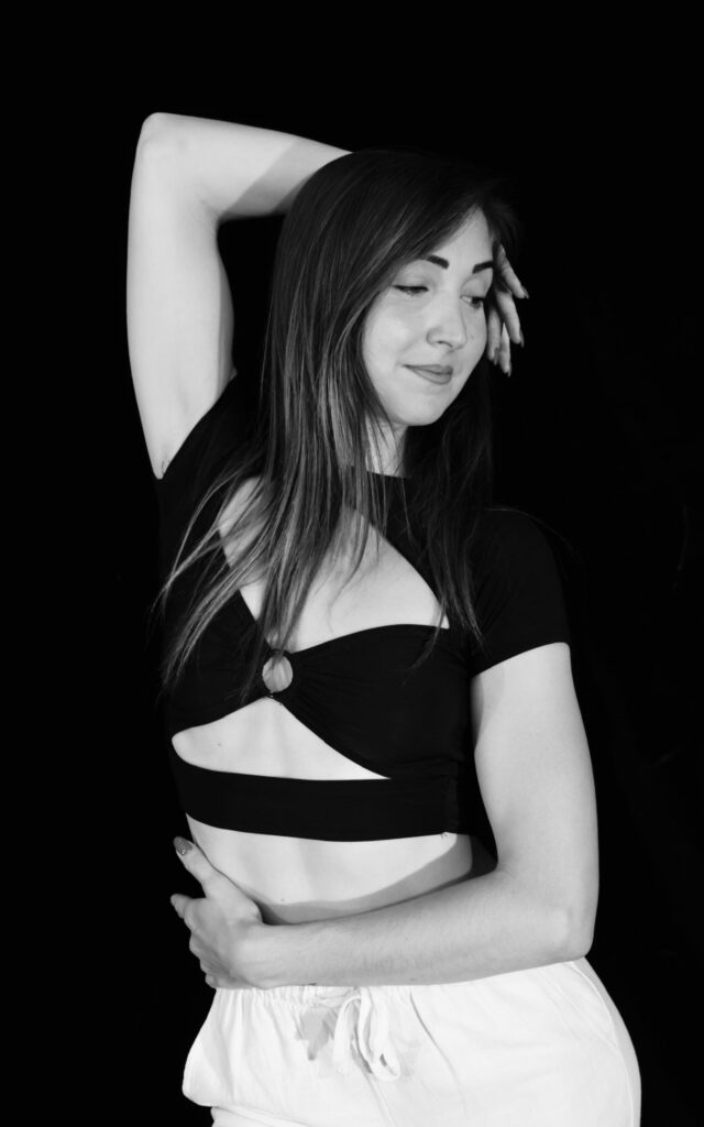 Fille de musicien, je baigne depuis toujours dans un monde artistique et musical. Mon histoire avec la danse commence, elle, à l’âge de 3 ans. Je débute par un enseignement classique, ensuite enrichi par le modern’ jazz et deviens très vite une véritable passionnée.